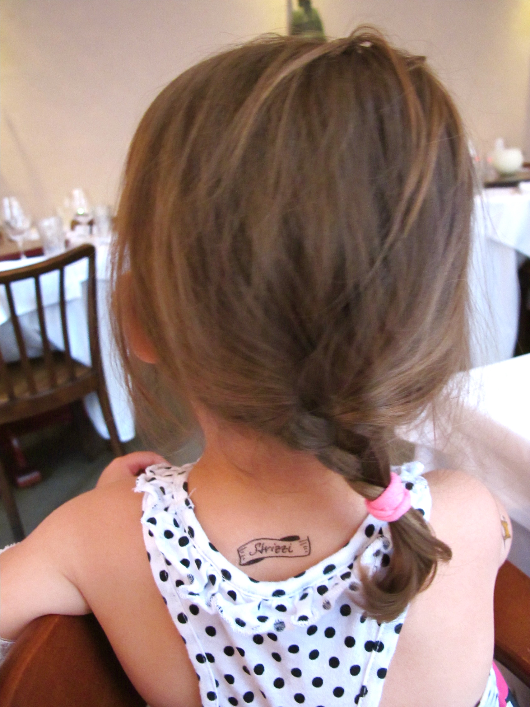 I gave Vicky some temporary tattoos. She wanted to have one on her back, like Tante Ody. Some role model, I am.