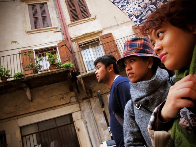 My friends Jo, Gerald and I went on a trip to Verona, home of Romeo and Juliet, on one of our long weekends in November three years ago. We were more than happy to escape cold Vienna, but didn’t expect it to rain so hard in fair Verona. We were lucky to have a few hours with just drizzle when we arrived, and when it really started pouring we still tried to walk under the rain w/ our cheap umbrellas and raincoat, but we ended up cold and soaked. We eventually tried to make the most of it by spending a lot of time at cafés and restaurants.