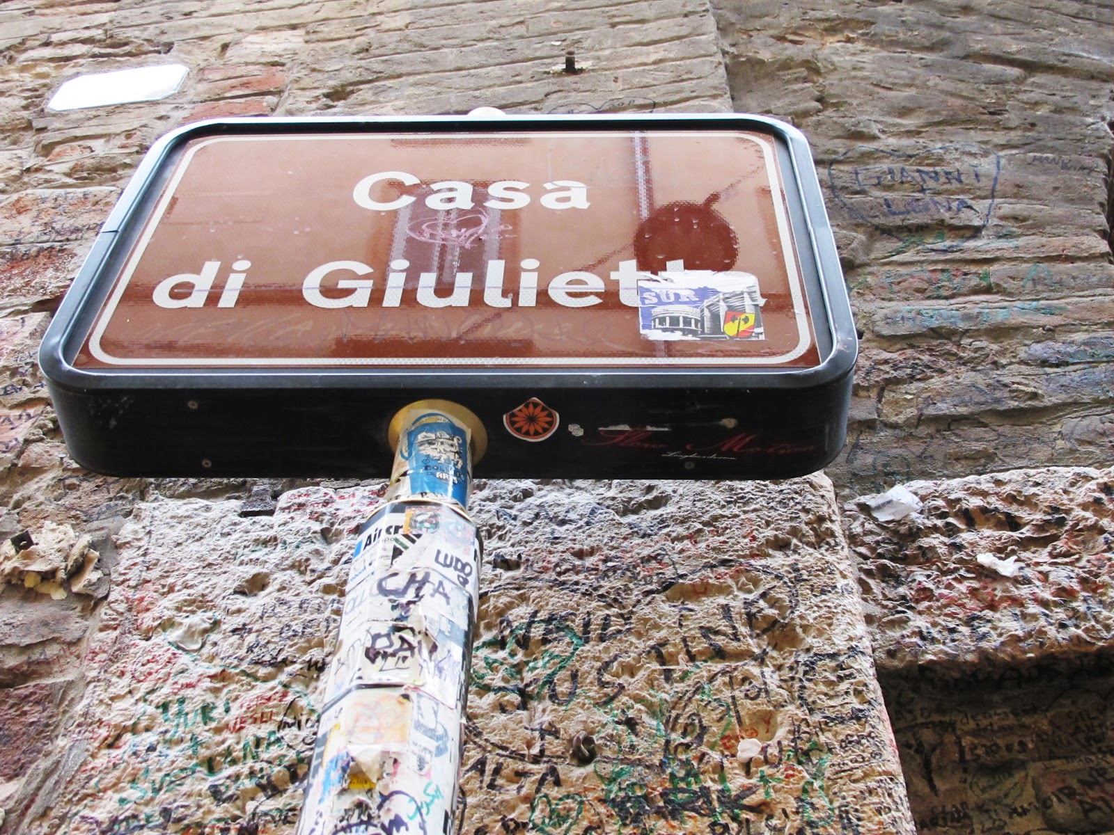 | I was a bit disappointed seeing this: the entrance to Juliet’s house was covered in graffiti and used gum |