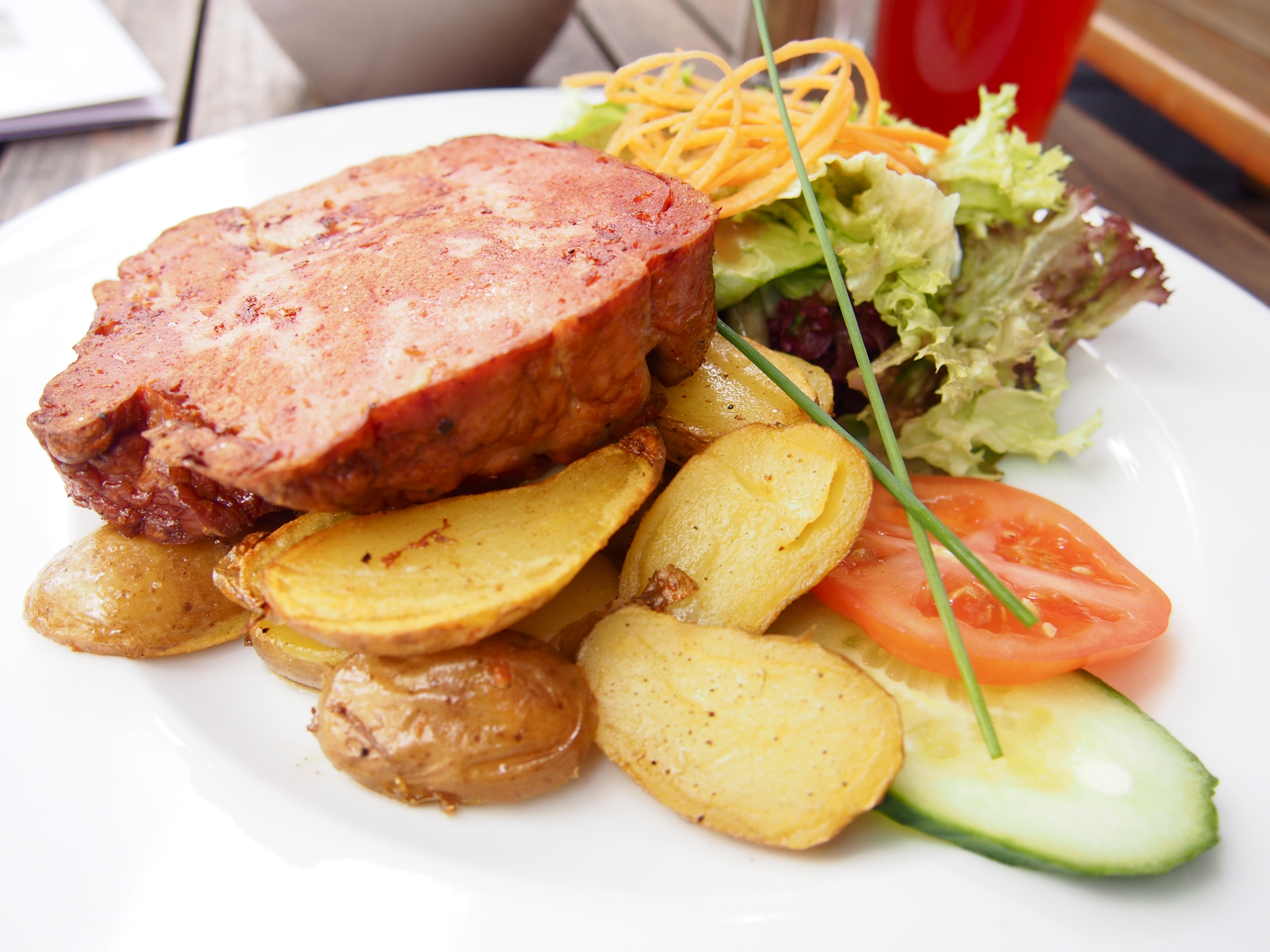It’s always nice to find something that reminds you a little of home when you’re traveling. I went to Feynsinn Café, which the Wallpaper* City Guide listed as one of the restaurants with delightful ambience and hearty food in Cologne. It was tempting to go for one of the burgers with sumptuous descriptions in the menu and organic ingredients, or delicious home-made pasta with fresh tomatoes from the café/restaurant’s own garden. When I saw that there was Leberkäse, (a type of meatloaf) on the menu, though, I had to order it. In Vienna, a Leberkäse in bread is what I would usually buy from a snack stand or the meat section of a supermarket for a quick and delicious meal. Feynsinn’s version was like a gourmet version of my favorite comfort food. One bite into it and all was fine and good again.