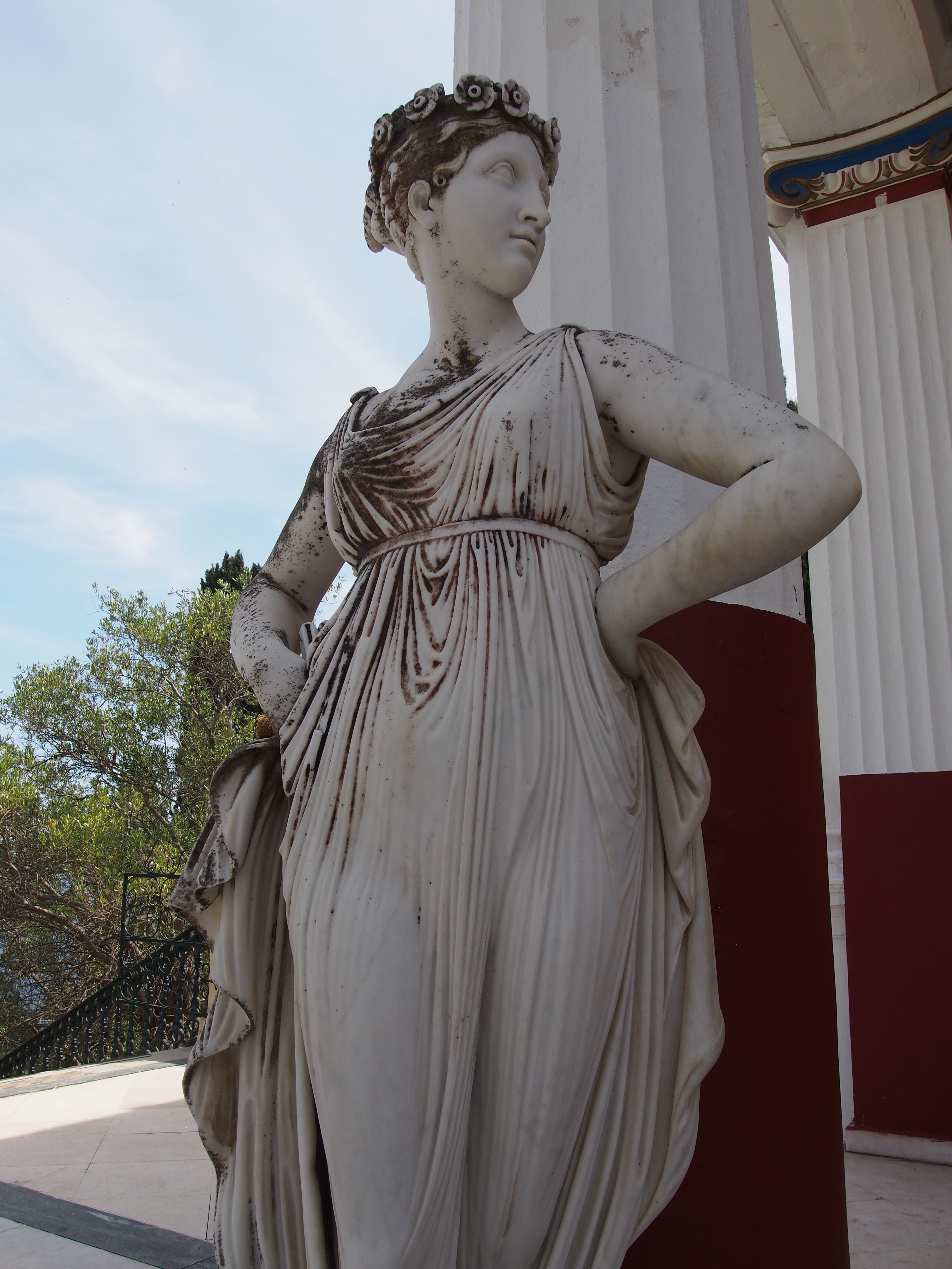 Empress Elisabeth of Austria, lovingly known as Sissi, was a beautiful, enigmatic woman. Her youth, beauty, and mystery inspired arts and entertainment – I particularly like Sissi starring Romy Schneider, and the musical Elisabeth. Because her sheltered life made her feel lonely, she started to go on frequent travels. In 1890, she had a palace built in her favorite place, Corfu, and named it Achillion Palace, after her favorite Greek hero Achilles.